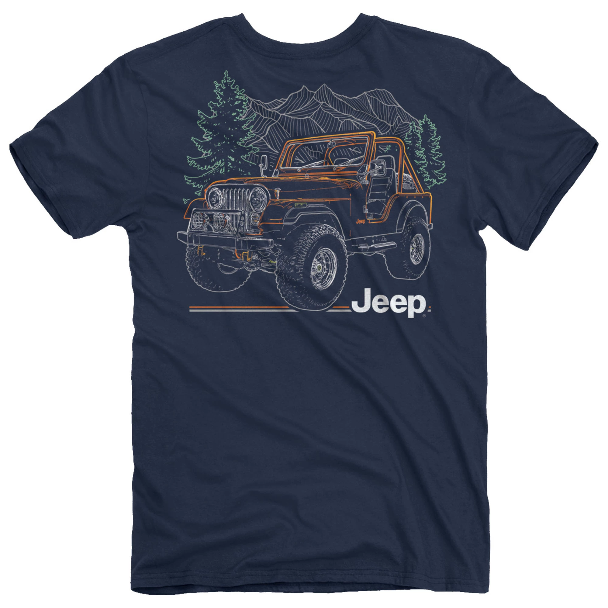 The Jeep Men’s Line Drive T Shirt has ruggedly cool graphics and a timeless fit that’s perfect to add to your collection. The unique line art illustration featured on the back lends effortless style and tough outdoorsy vibes to this shirt so you’re sure to stand out from the flock. Thoughtfully crafted from 100% ring-spun cotton and preshrunk for your peace of mind, this shirt can be washed again and again without fading, shrinking, or losing any of its super soft texture! The Jeep Men’s Line Drive T Shirt is ready for your next adventure on the road!