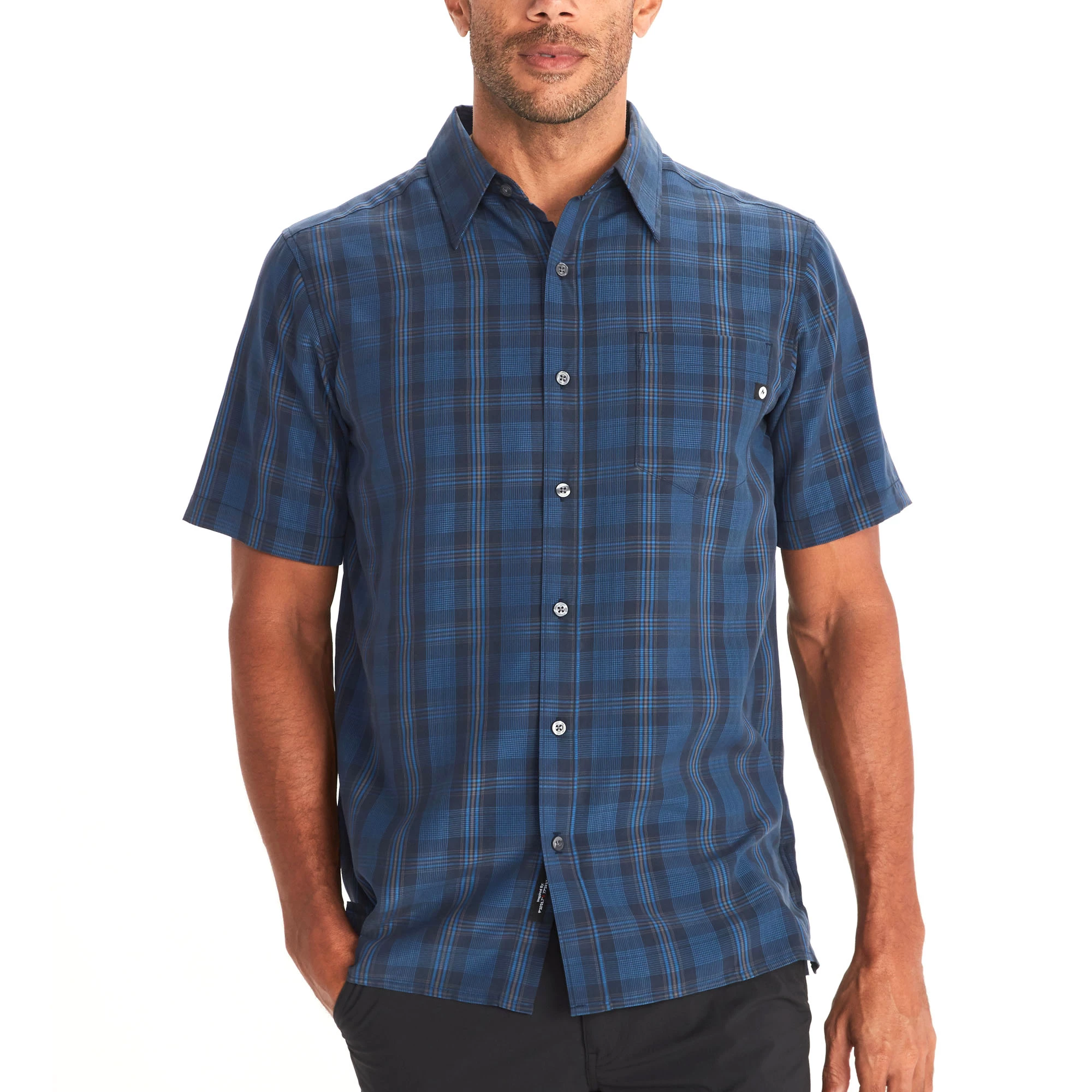 The Marmot Men’s Eldridge Short Sleeve Shirt is soft, sanded, and super versatile. This midweight button-down shirt blends tailored style, high-performance features, and doing good. It has built-in UPF 20 UV protection to shield your skin from the sun’s harmful rays, while flat-felled seams offer outstanding comfort and durability. Stow sunnies, your phone, or important cards in the single patch pocket. Environmental impact has been reduced with Marmot UpCycle® fabric made from recycled post-consumer plastic bottles. The Marmot Men’s Eldridge Short Sleeve Shirt is the perfect choice for when adventuring is on the agenda.