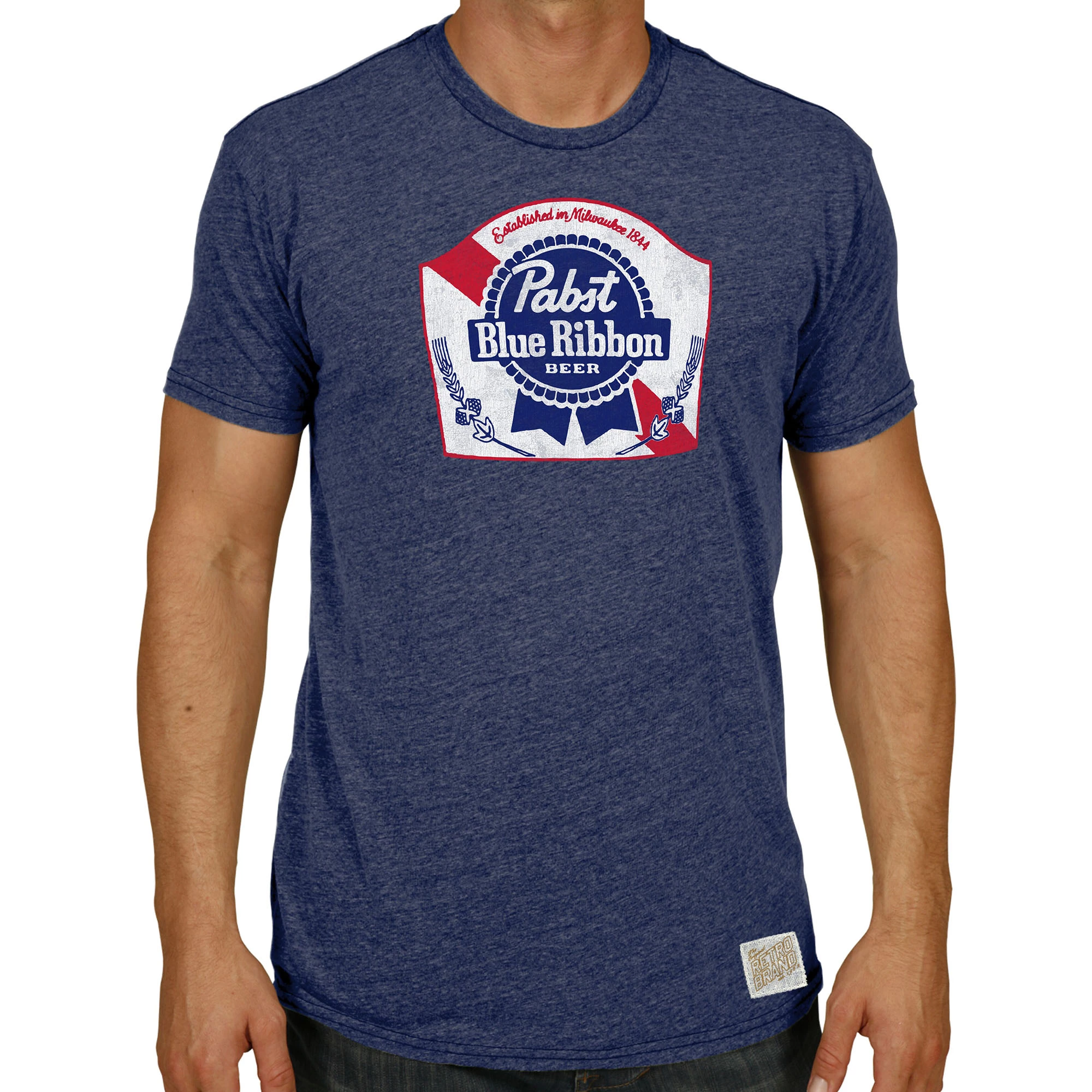 Original Retro Brand Men’s Short Sleeve Pabst Blue Ribbon T-Shirt Navy