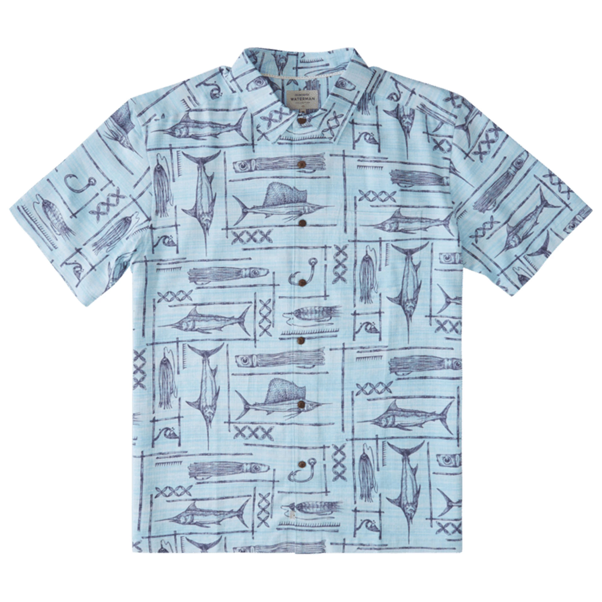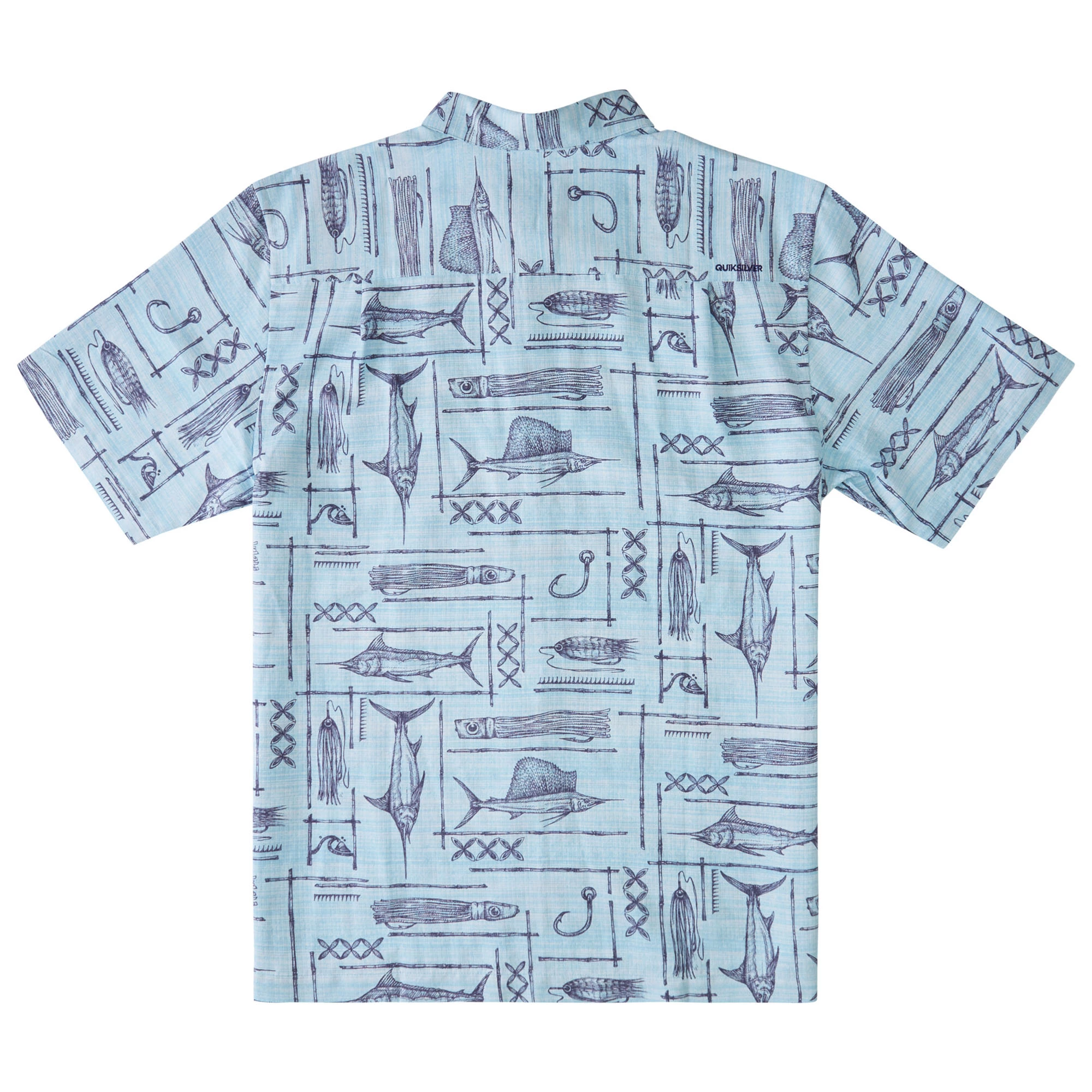 Quiksilver Mens Waterman Blue Water Fish Short Sleeve Shirt